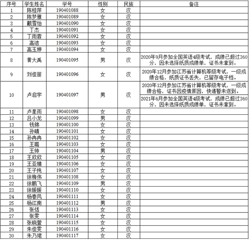 根据盐城师范学院“3+2”分段培养转段升学考核方案的规定,截至目前,盐城工业职业技术学院经贸管理学院会计1911符合转段考核要求的学生如下: