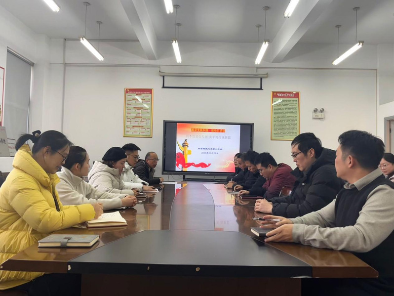 2025年12月28日下午,商学院党总支第二党支部组织全体党员开展“固本强基促发展实干笃行谋新篇”主题党日活动。首先,支部全体党员在商学院301会议室学习习近平总书记关于全面依法治国的重要指示、纪念胡耀邦同志诞辰110周年座谈会讲话精神以及二十届中共中央政治局第二十三次集体学习讲话精神。通过系统学习,全体党员进一步深化了对党的理论方针的理解,筑牢了思想根基,凝聚了政治共识。其次,召开第二党支部2025年秋学期预备党员接收暨转正大会。薛志俊同志详细宣读了本次大会的议程安排与纪律要求。他强调,预备党员接收与转正工作是党支部政治生活中的重要大事,直接关系到党员队伍的纯洁性、先进性与党组织的新鲜血液补